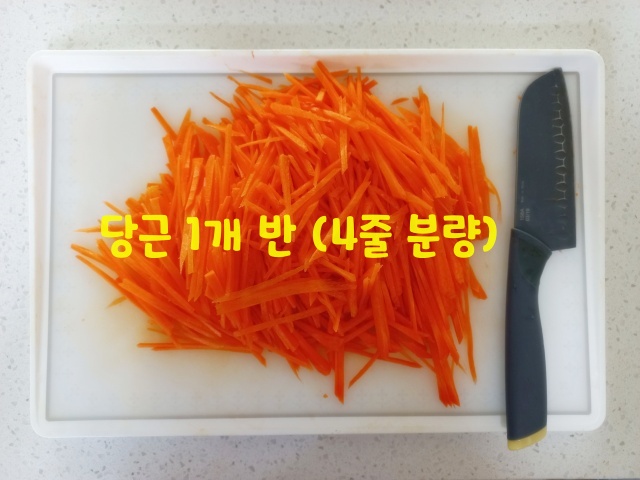 당근 1개 반이 말로는 우습지만, 채칼을 이용하지 않으면 써는 노고가 만만치 않다.